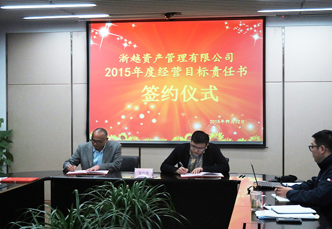 2015年11月12日下午,浙越資產管理有限公司(以下簡稱“浙越資產”)如期召開年終沖刺動員大會。會議由呂丙董事長主持,公司經營管理層及全體員工參加。