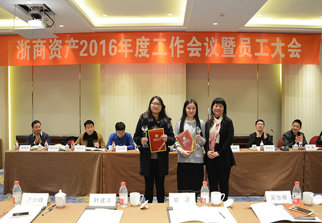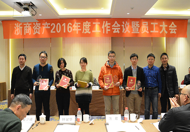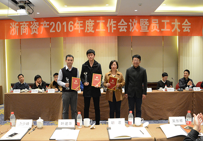 會議第二項議程為表彰年度先進集體及先進個人,杭州業務三部、法律合規部獲得了先進集體的榮譽,錢烈、毛倩瑩、翟峰等獲得了先進個人的榮譽。