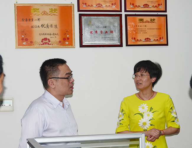 2016年6月2日下午,浙江國貿(mào)集團(tuán)副總裁、浙商資產(chǎn)董事長藍(lán)翔一行抵達(dá)金華,對(duì)下屬金信資產(chǎn)、般若理財(cái)金華營業(yè)部、奧托康制藥公司等進(jìn)行視察指導(dǎo)工作。