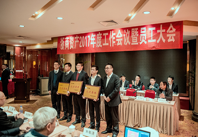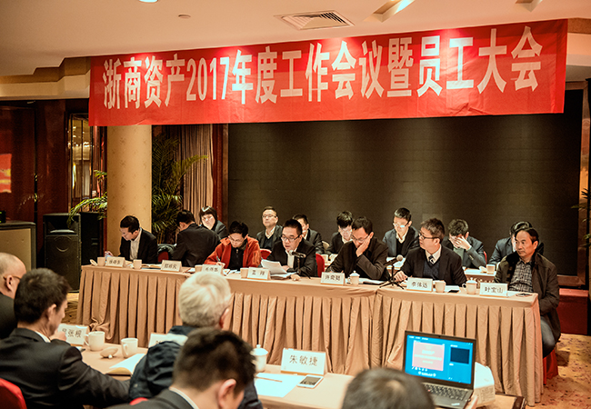 2016年1月19日上午,浙商資產(chǎn)于杭州友好飯店召開2017年度工作會議暨員工大會,會議由公司總經(jīng)理李偉達(dá)主持。省金融辦金融穩(wěn)定處許奇挺處長,財(cái)專辦毛海華副處長、王晗科長,公司本級全體員工及浙蕭資產(chǎn)、浙易資產(chǎn)、般若理財(cái)、金信資產(chǎn)、臺信資產(chǎn)等成員公司員工到會參加。