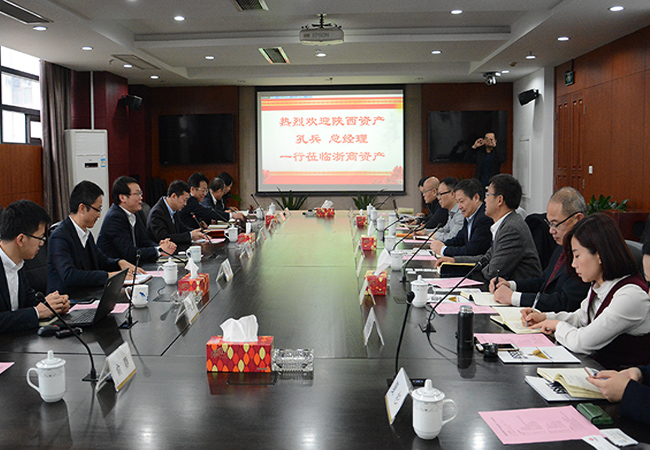 2017年2月23日,陜金資產孔兵總經理一行來訪浙商資產。公司總經理李偉達、黨委書記鄭順民對孔總一行的來訪表示熱烈歡迎,公司領導介紹了浙商資產業務開展情況、決策機制設置、風控體系建設、戰略規劃發展等方面的情況;孔總介紹了陜金資產的業務開展情況,分享了債轉股業務的案例經驗。隨后雙方深入討論和研究了業務模式創新,加強地方資產管理公司合作等方面的內容。
