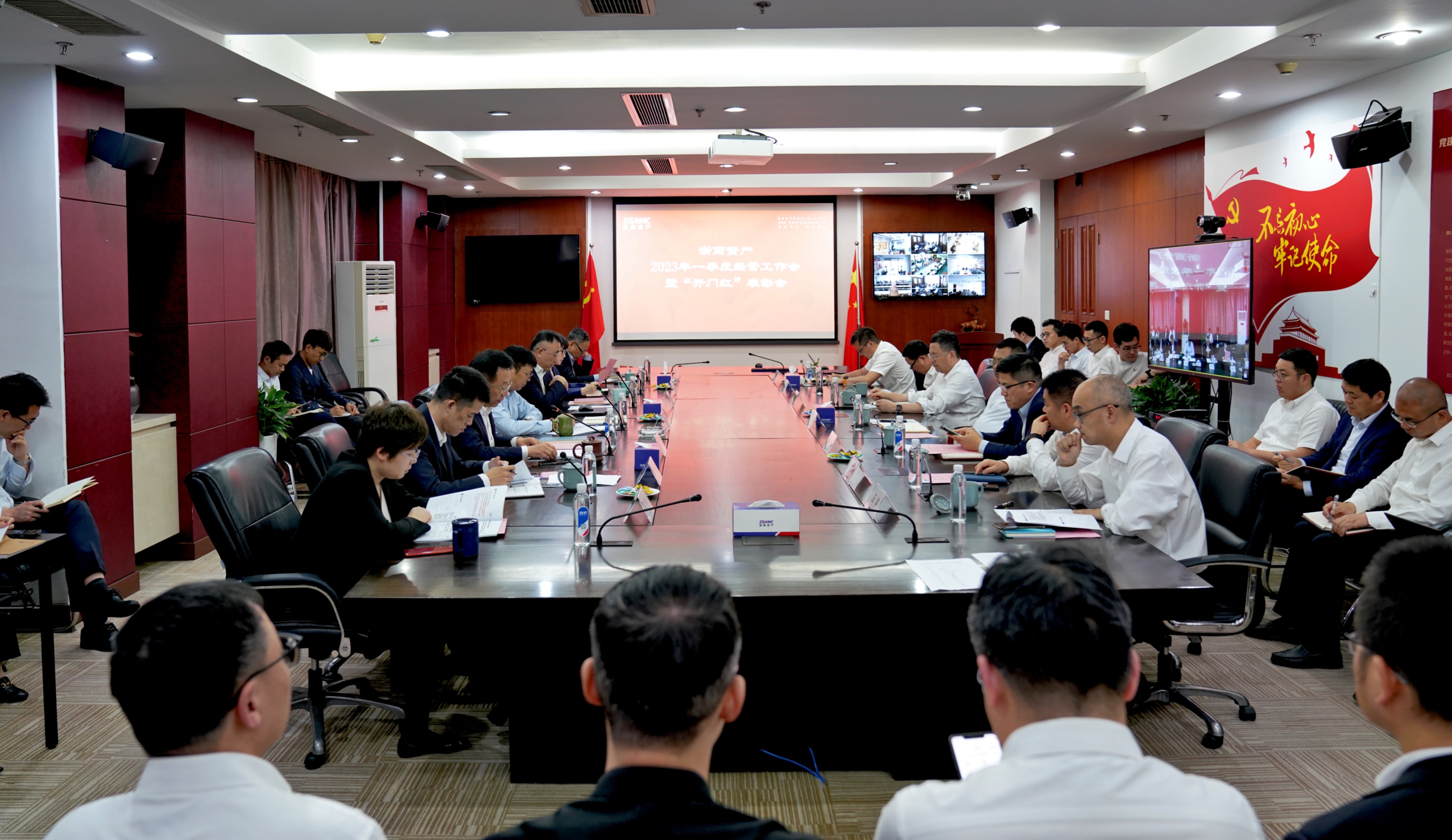4月21日下午,浙商資產(chǎn)順利召開2023年一季度經(jīng)營工作會暨“開門紅”表彰會。會議系統(tǒng)總結(jié)一季度經(jīng)營工作情況,深入研判當前形勢,部署二季度重點工作任務(wù),并舉行了2023年“開門紅”表彰。公司領(lǐng)導班子成員、業(yè)務(wù)副總經(jīng)理,各分公司、成員公司主要負責人以及本級中后臺部門負責人在現(xiàn)場參會,公司全體員工通過視頻參會。浙商資產(chǎn)黨委副書記、總經(jīng)理李偉達作一季度經(jīng)營工作報告,黨委副書記、工會主席陳霖宣讀“開門紅”表彰,黨委委員、副董事長、首席戰(zhàn)略官李傳全主持會議并作二季度經(jīng)營策略安排,黨委委員、常務(wù)副總經(jīng)理王賚通報公司重點工作機制安排。