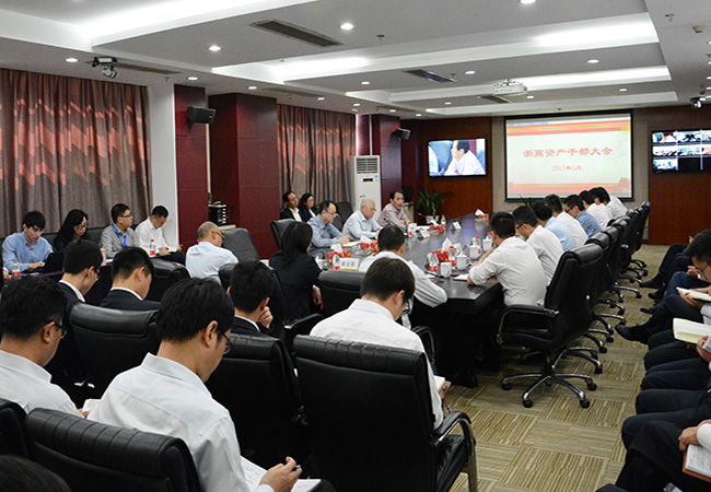 2017年5月11日上午,浙商資產召開干部大會,宣布國貿集團關于調整浙商資產第一屆董事會組成的決定,任命孫建華為浙江省浙商資產管理有限公司第一屆董事會董事、董事長。國貿集團董事長、黨委書記樓晶主持會議并講話,集團董事、總經理、黨委委員孫建華,集團董事、副總經理、黨委委員藍翔,浙商資產總經理李偉達作表態發言,集團黨委委員、組織部部長任偉海、浙商資產班子成員出席會議。